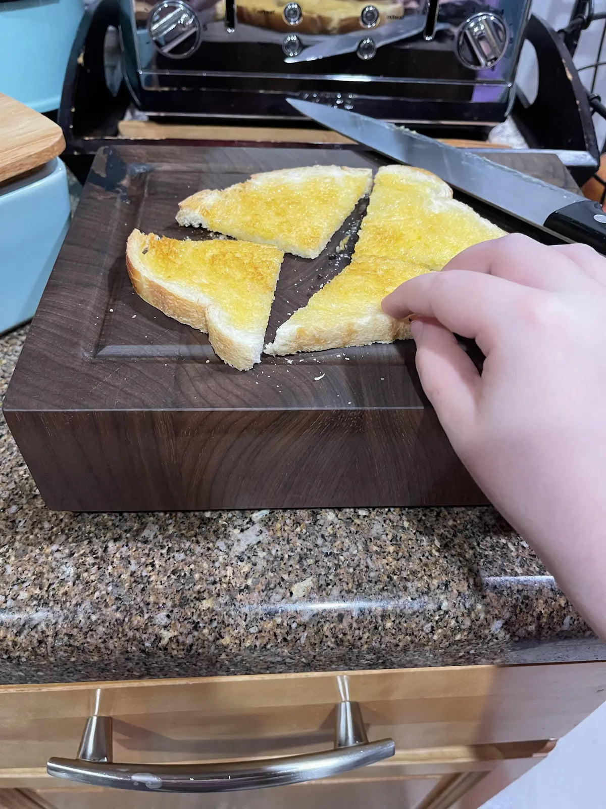 I’ve had my eye this ever since he made it, it is so beautiful! It is solid and striking and now lives with my toaster ready to make toast points for the grandkids’ breakfast. I am chock full of bias, of course, but truly there’s no denying it is a well made, beautiful, functional addition to my kitchen and just plain makes me happy to use it!