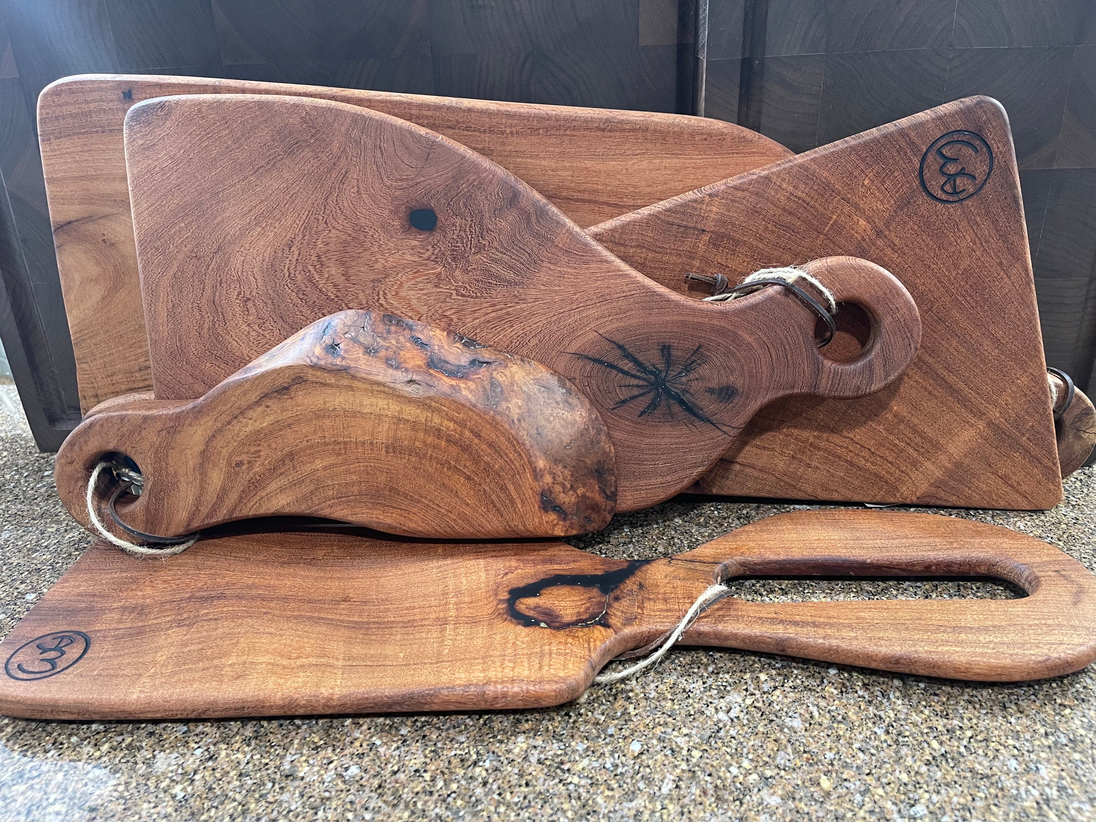 Beautiful, handcrafted old-growth mesquite wood charcuterie boards in various sizes. Made with Wood Harvested by The Ardent Man himself and crafted with care!